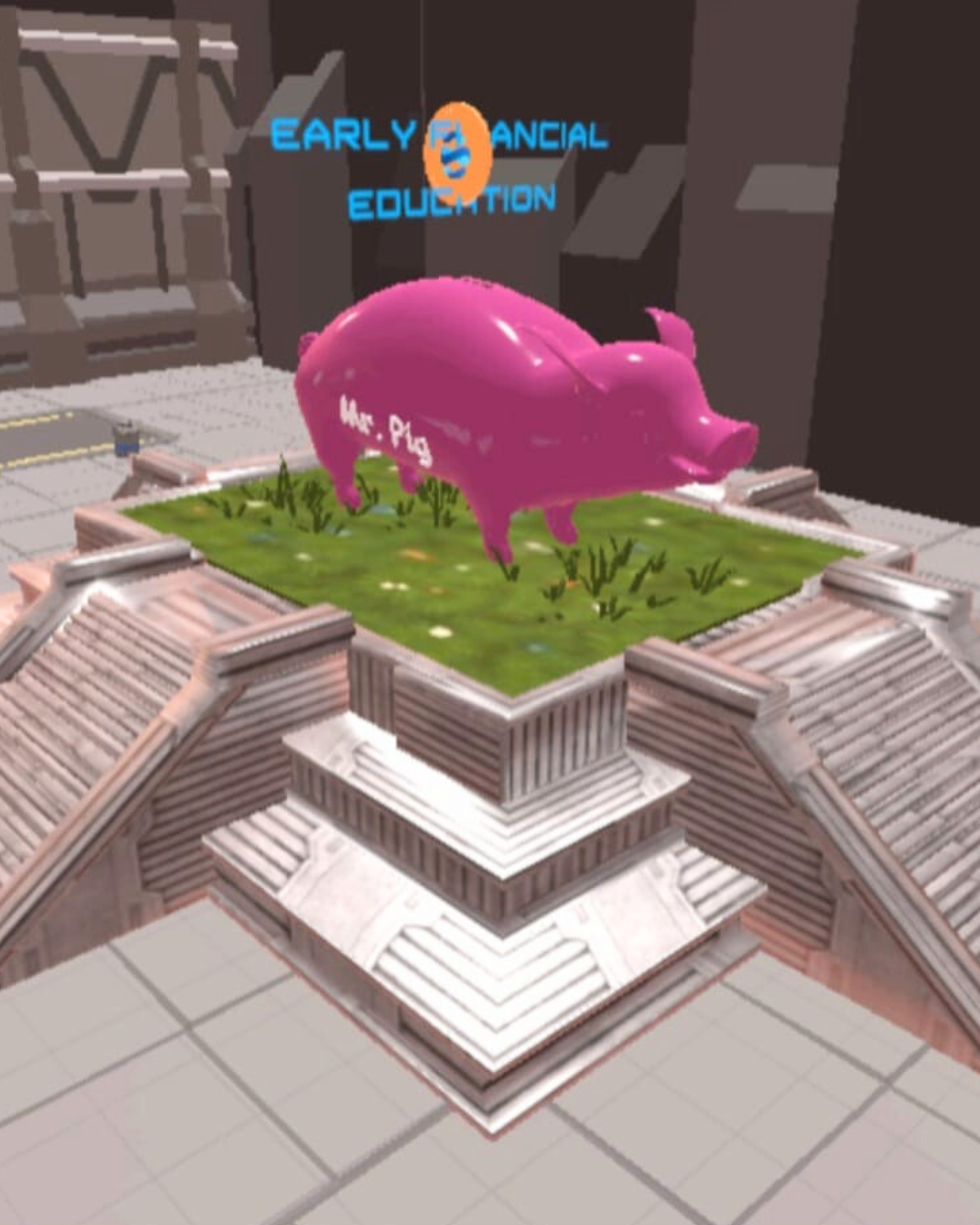 One of iNTRO'S creations is a virtual world designed on a"play to learn" model incorporates game play and financial literacy education for our youth. Mr. Pig has now joined us in this virtual world, aiding us in this mission.